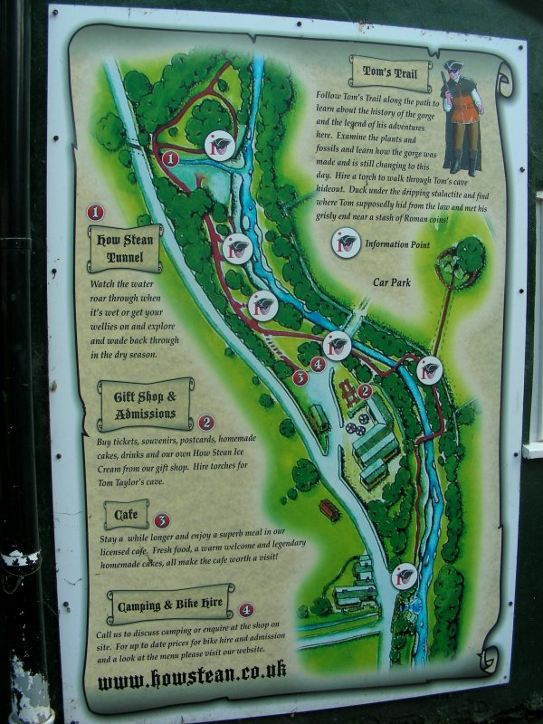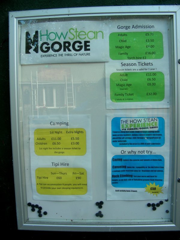 | Middlesmoor is a quaint little village situated on the hillside above the junction of two valleys, many of the homes constructed of stone. The local church seems perched almost on the edge of the hillside. The place name was first mentioned in the 12th century. It probably means "moorland in the middle of two streams" referring to the River Nidd and its tributary How Stean Beck. From here we followed the road the wound it's way down the hillside. Taking a path leading off to the right across farmland, a single strand of electric fence separating us and a herd of rather large cows somewhat annoyed at our presence, we continued on to another road which took us down to How Stean Gorge, officially a Site of Special Scientific Interest and a spectacular natural attraction. This steep sided chasm is almost 1 km in length and up to 20 metres (80ft) deep. It contains a maze of footpaths, caves and potholes which have been hollowed out of the limestone rock by the constant water flow over thousands of years and has been developed as a centre for outdoor adventure activities. This has led to the construction of a new Via Ferrata course - an aerial network of beams, ladders and cables - one of only two in England. Though entrance to the gorge costs only £5.75, for access to any of its activities such as the Via Ferrata, rock climbing, caving or canoeing, the price rises steeply to £50. Judging by the number of visitors that day, the price did not seem to act as a deterrent. Crossing the bridge over How Stean Gorge, we continued a short distance until we reached another across the River Nidd, just outside the town of Lofthouse, from where we had started our walk. |