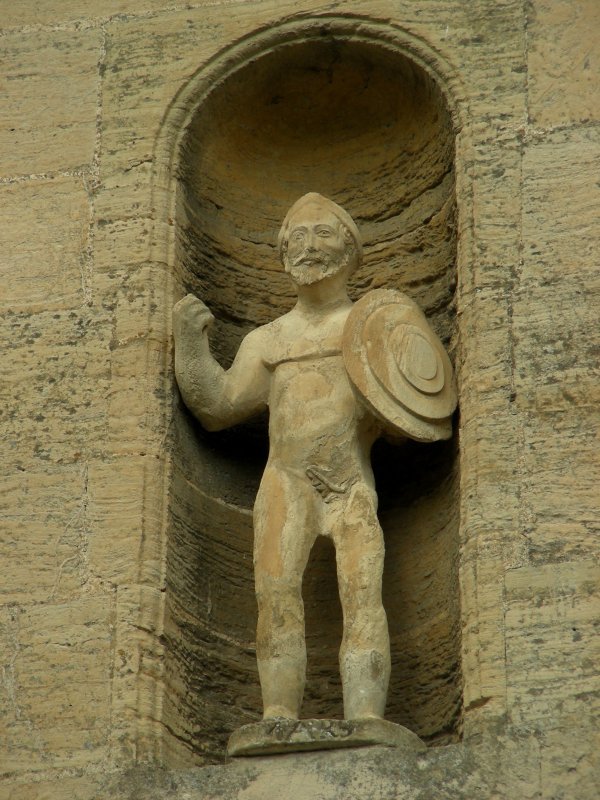 statues on the facade of Fountains Hall depicting Mars, God of War and