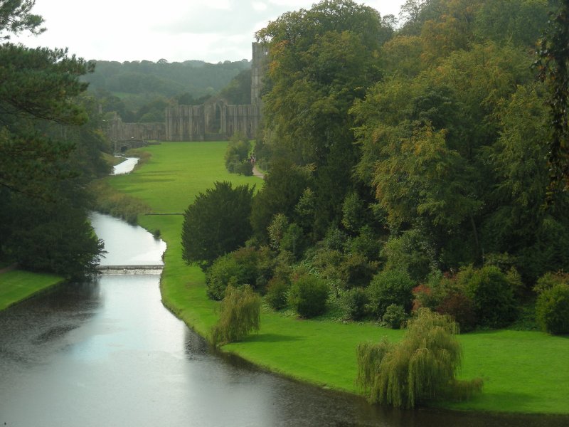 River Skell and Fountains Abbey, as viewed from High Rise. |