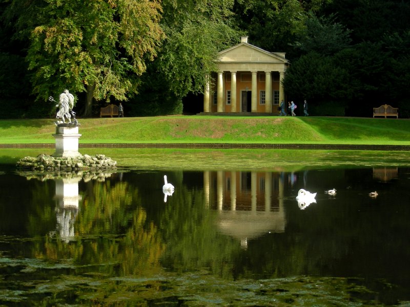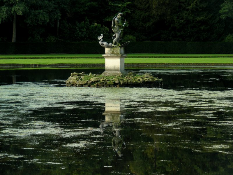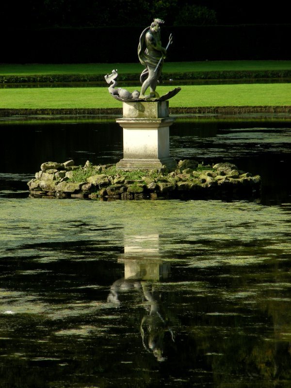 and The Statue of Neptune in the still waters of the Moon Pond, |