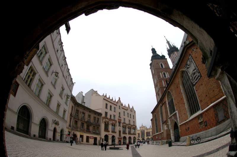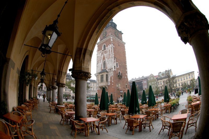 The Town Hall as viewed through the arches of Sukiennice |