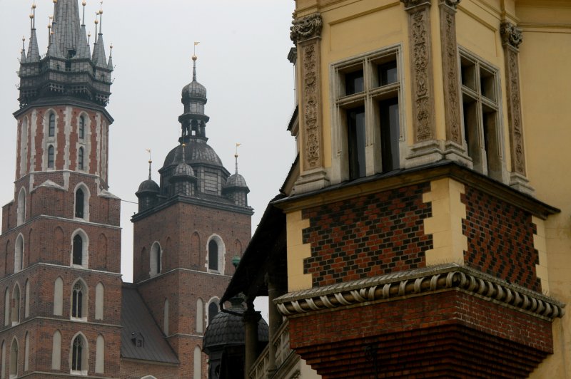 Crakow architecture - the spires of St Mary's & The Cloth Hall -another view |